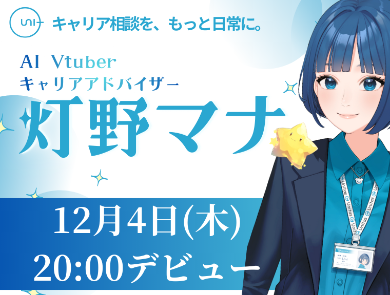 株式会社Unitas(本社:東京都目黒区、代表取締役:細川晃男)は、従来の転職エージェントでは実現できなかった「24時間365日」「もっと気軽に」AIにキャリア相談ができる、AIキャリアアドバイザー「灯野マナ」を2025年12月4日(木)より、YouTube上で爆誕します。
