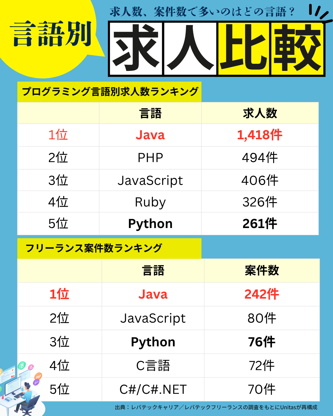 【JavaとPython比較⑤】求人数・就職のしやすさ