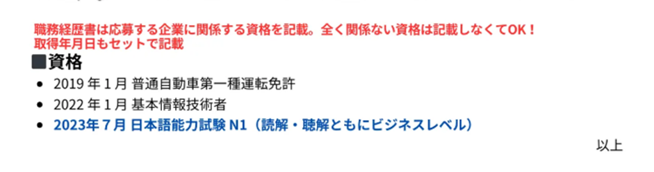 【資格】「応募企業に関係するものだけ」でOK